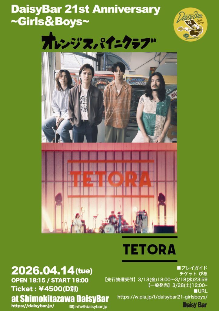 4/14(火)開催 「DaisyBar 21st Anniversary~Girls&Boys~」 @下北沢DaisyBar