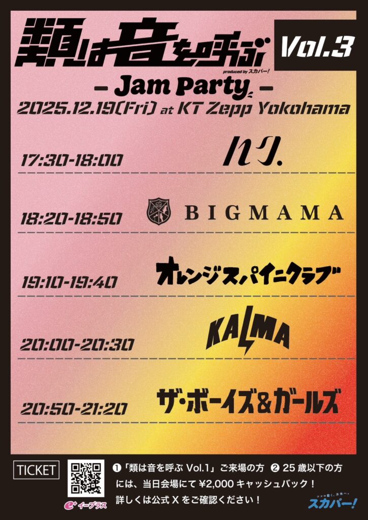 OPEN 16:30 / START 17:30 adv ¥7,000(ドリンク代別 / 税込 ) w / KALMA / THE BOYS&GIRLS / ハク。