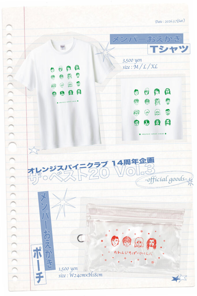 3/7(土)に開催するオレンジスパイニクラブ 14周年企画「ザ・ベスト20 Vol.3」@ バナナホールの会場限定グッズを公開しました!