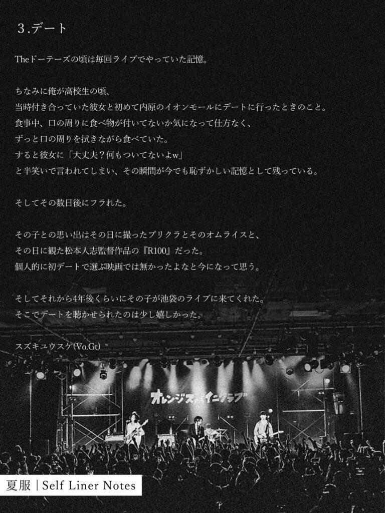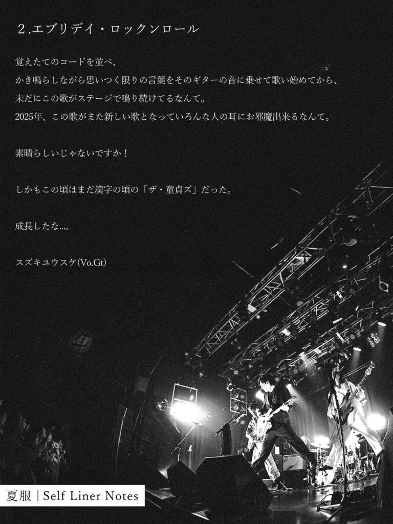4th Mini Album「ナイフ」に付属されたCD「夏服」のセルフライナーノーツを順次公開します!